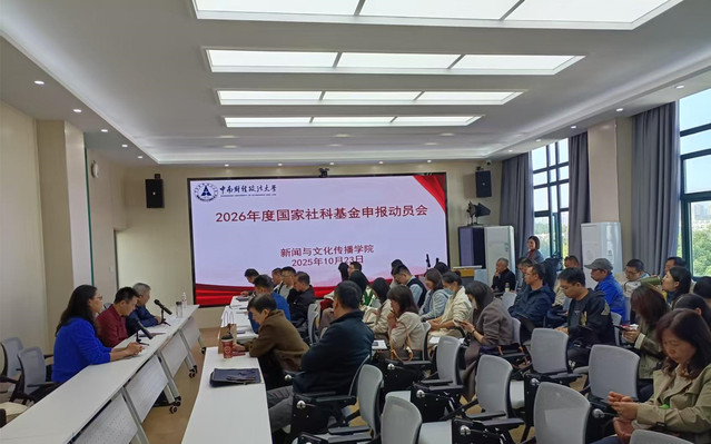 (通讯员 杨华)10 月 23 日下午,新闻与文化传播学院(以下简称新闻学院)在文波五楼会议室召开了2026 年度国家社科基金申报动员会,全面部署落实申报工作。学院全体专任教师、党政班子成员齐聚现场,会场气氛热烈而隆重,共同为即将开启的申报工作凝聚智慧与力量。会议由学院副院长陈国和主持。