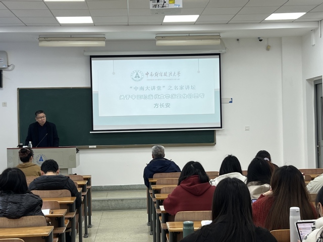 (通讯员 潘链钰)11月29日上午,武汉大学特聘教授、长江学者方长安教授应邀莅临中南财经政法大学文泰楼212教室,作了题为《关于中国现当代文学历史化的思考》的学术讲座。现场座无虚席,吸引了众多校内外青年教师与学生参与,学术气氛热烈。