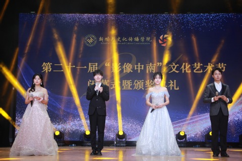 (学生通讯员 钟知方 思茵茵 刘键蓝 陈怡婷 荆一婷 周安祺 郝梓彤 纪明婕 黄莉淇)12月3日晚,由中南财经政法大学党委宣传部、新闻与文化传播学院和中韩新媒体学院共同举办的第二十一届“影像中南”文化艺术节闭幕式暨颁奖典礼在艺体中心音乐厅顺利举行。中南财经政法大学党委副书记陈狮、党委研究生工作部部长张文剑、党委宣传部副部长邓松、党委学生工作部副部长范献龙、校团委副书记林晶晶、就业指导服务中心副主任贾晓,中韩新媒体学院党委书记于方、副院长赵博雅、党委副书记徐明,新闻与文化传播学院院长余秀才、党委书记吉群、副院长陈国和、党委副书记胡桂锬出席活动,学院教师及学生代表共同参加。
