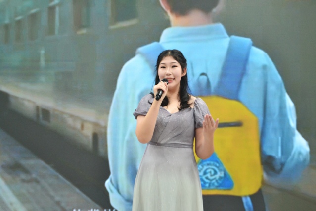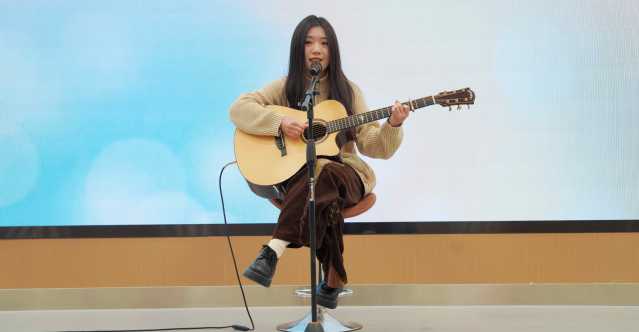 晚会渐入尾声,2025级研究生潘祥羽带来的吉他弹唱《二十二》,以清澈的琴声与质朴的歌声营造出宁静悠远的氛围,用音乐表达对未来的憧憬与坚持,令人回味。