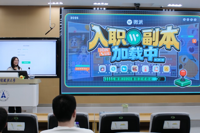 宣讲会伊始,微派并未直接进入主题,而是以一场“你说我猜”的趣味游戏破冰,巧妙拉近与现场学生的距离,迅速点燃现场气氛。随后,宣讲会围绕公司介绍、产品业务、招聘计划与校友分享等环节展开。微派公司成立于2013年,是一家全球用户量超8亿的互联网公司,旗下拥有《贪吃蛇大作战》《青藤之恋》等知名休闲游戏和社交产品,并积极履行社会责任,参与多项公益项目。针对校招,微派重点展示了三大优势:广阔的市场前景与行业地位、为期6个月的校招生专项培养计划,以及面向寒暑假的“挖金计划”研发实习项目,助力学生积累实战经验。宣讲会现场同步公布了完整的招聘流程与简历投递渠道。