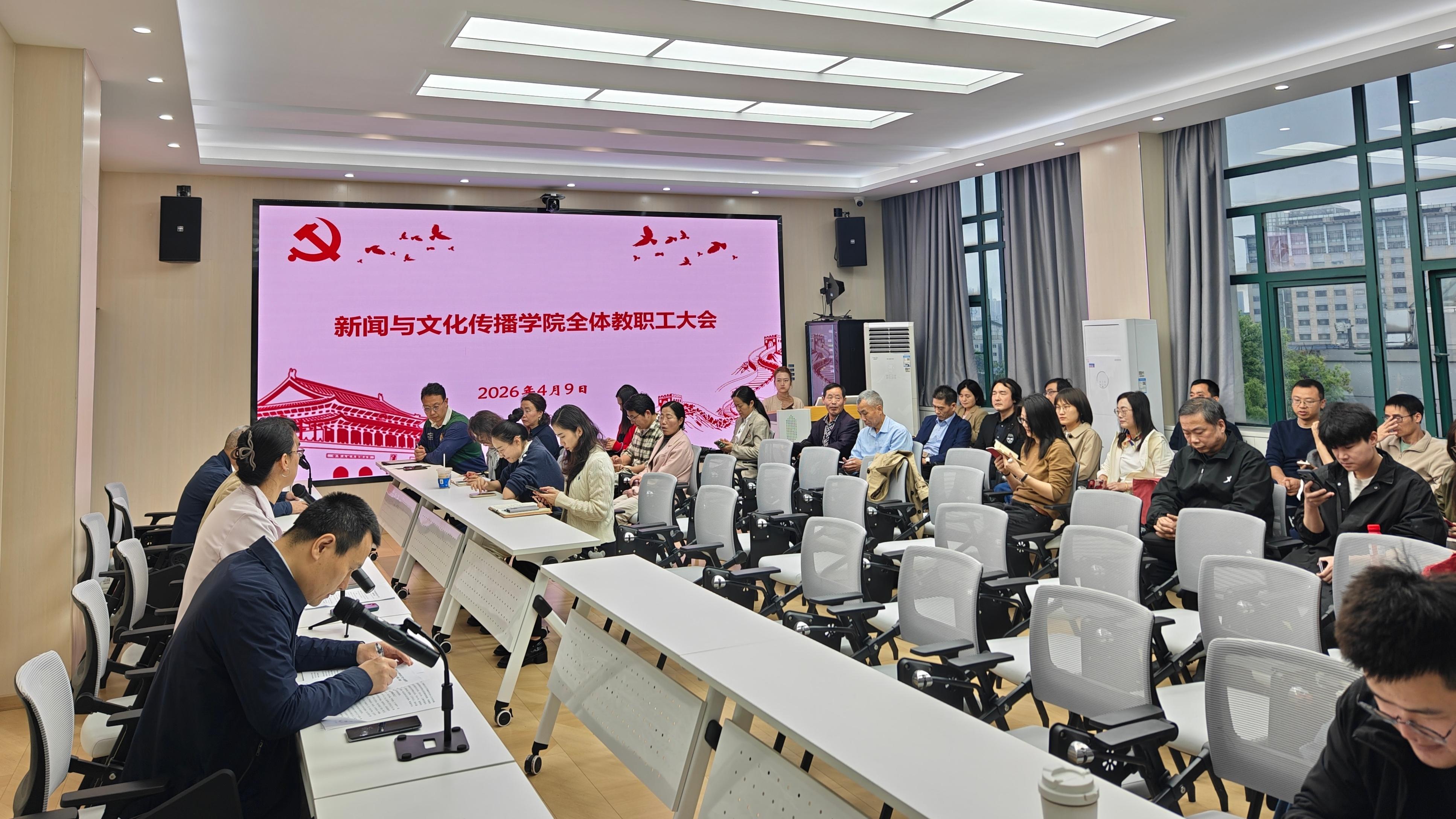 (通讯员 杨倩文 康俊)为精准掌握年度重点工作推进动态,压紧压实工作责任,确保2026年各项任务高标准落地见效,4月9日,新闻与文化传播学院召开2026年重点工作推进会。学院领导班子成员、各系主任及全体教职工参会。