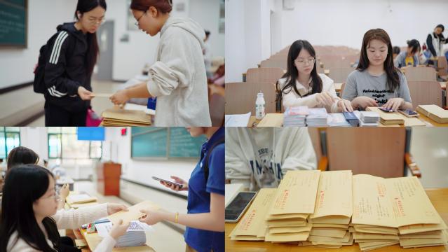 培训结束后,志愿者们认真构思、精心撰写。4月18日下午,收信活动分别在文泰楼101教室和文津楼301教室开展,志愿者们陆续提交了饱含心意的信件,工作人员统一整理、核对,并于4月20日将信件寄往全国500余所高中。