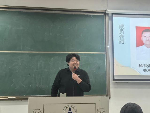 紧接着,学生会秘书处部长关湘谚以幽默风趣的语言上台宣讲,瞬间点燃了全场热情,将宣讲会氛围推向新的高潮。在介绍秘书处成员时,他妙语连珠,“李嘉凡有技术,堪称文臣;都彦伯会武术,实乃武将——咱部门文武双全。”这般生动的介绍,引得全场笑声与掌声交织。
