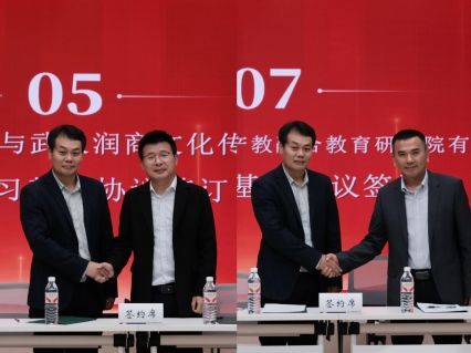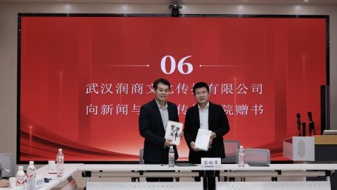 余秀才代表学院分别与武汉润商文化传播有限公司、湖北产教融合教育研究院有限责任公司签订教学实习(就业实践)基地协议。签约仪式后,武汉润商文化传播有限公司向新闻与文化传播学院赠书。