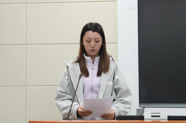 紧接着,新发展团员代表陈怡然上台发言。她从自身实际经历出发,分享了自己对团员身份的深刻认知,号召全体团员以“练就过硬本领、主动担当责任”为目标,争做时代栋梁。