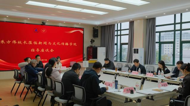 (通讯员 杨倩文)3月17日下午,校长、党委副书记朱方伟深入新闻与文化传播学院调研指导工作,党委办公室、学校办公室副主任覃虹陪同调研。学院领导班子、科室负责人参加调研座谈,座谈会由院长余秀才主持。