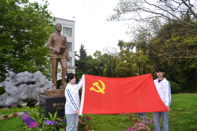 作为《新华日报》首任社长、中原大学校长,潘梓年一生为党办报、为国育才。董必武曾赞他“如君党性实堪钦”。五十四年过去,他一生坚守信仰、求真务实的精神仍在激励着后人。纪念仪式最后,全体师生面向党旗,重温入党誓词。铿锵有力的誓言在铜像前回响。