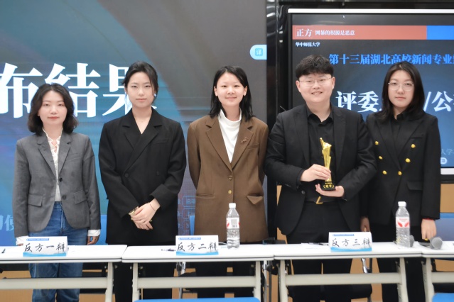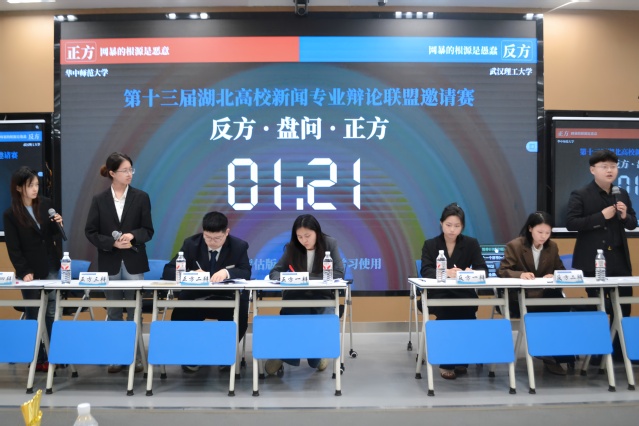 (学生通讯员 刘键蓝 周安祺 纪明婕)4月18日下午,第十三届湖北高校新闻专业辩论联盟邀请赛在文波楼112教室拉开战幕。赛事由湖北省新闻辩论联盟主办,新闻与文化传播学院承办。“新辩盟”引导新传学子聚焦社会热点与行业前沿,在实战交锋中夯实专业知识,提升思辨表达素养,推动湖北高校新闻院系经验互鉴与资源共享。